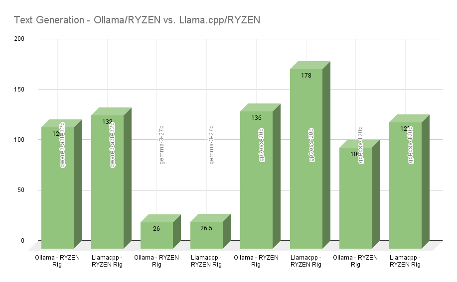 Okay I am not going to make you read tables to get to the bottom line. Here is a nice chart to outline this competition broken down by prompt processing and token generation.